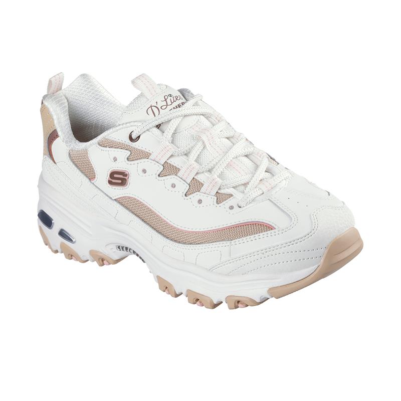 引領潮流、蔚為風尚的Skechers D'Lites 系列。大輪廓的廓型鞋底設計,復古時尚;高底台設計,能修飾腿部線條,讓您身形更加修長。透氣鞋墊,讓您走的每一步就像踩在枕頭上一樣舒服並隨時保持乾爽透氣。